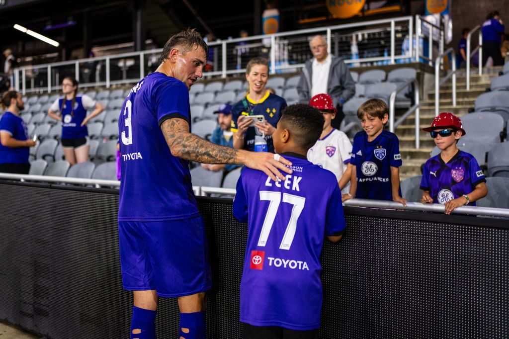 In 2022, doctors with Norton Children’s discovered that Titas had a rare brain tumor that accounts for only 4 to 6 percent of all brain tumors in children. Titas is currently receiving chemotherapy treatments at Norton Children’s Cancer Institute. The boys in purple were able to meet Titas and the club was so impressed by both his jovial spirit and tenacity that he was named our honorary captain and signed to a one-day contract!