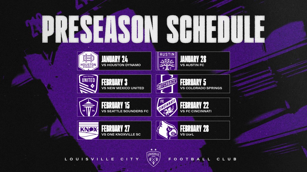 Louisville City FC’s 2026 preseason will include an eight-game friendly slate featuring competition from Major League Soccer and the United Soccer League leading up to the regular season opener in March.