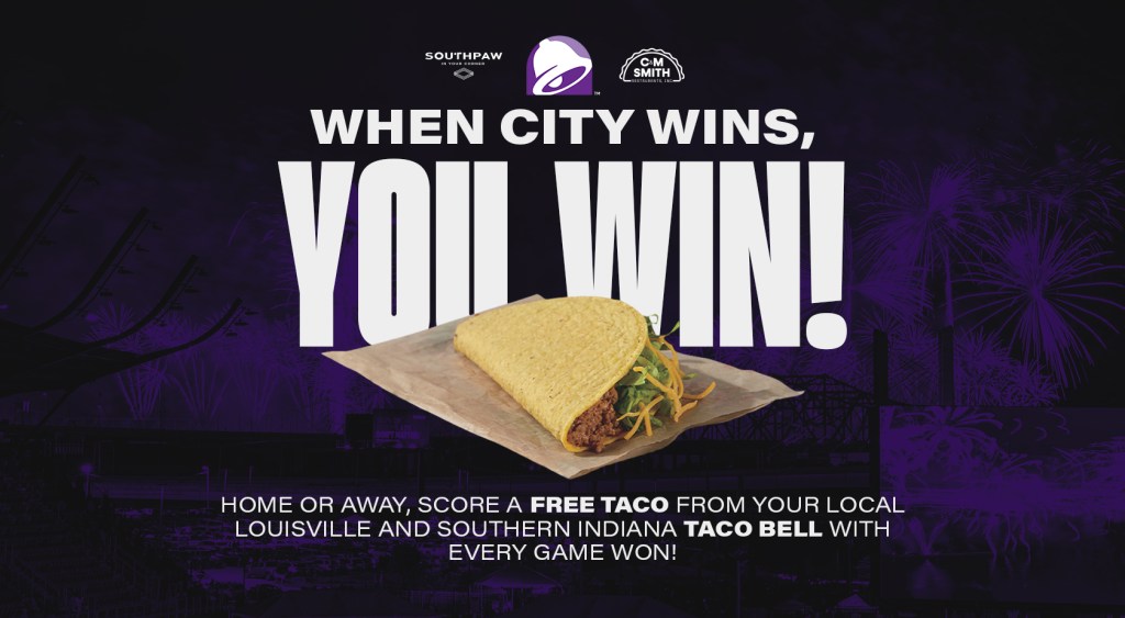 This season, Louisville’s professional soccer clubs have partnered with Kentuckiana-area Taco Bell franchisees to give you a FREE taco for Louisville City FC or Racing Louisville FC wins!