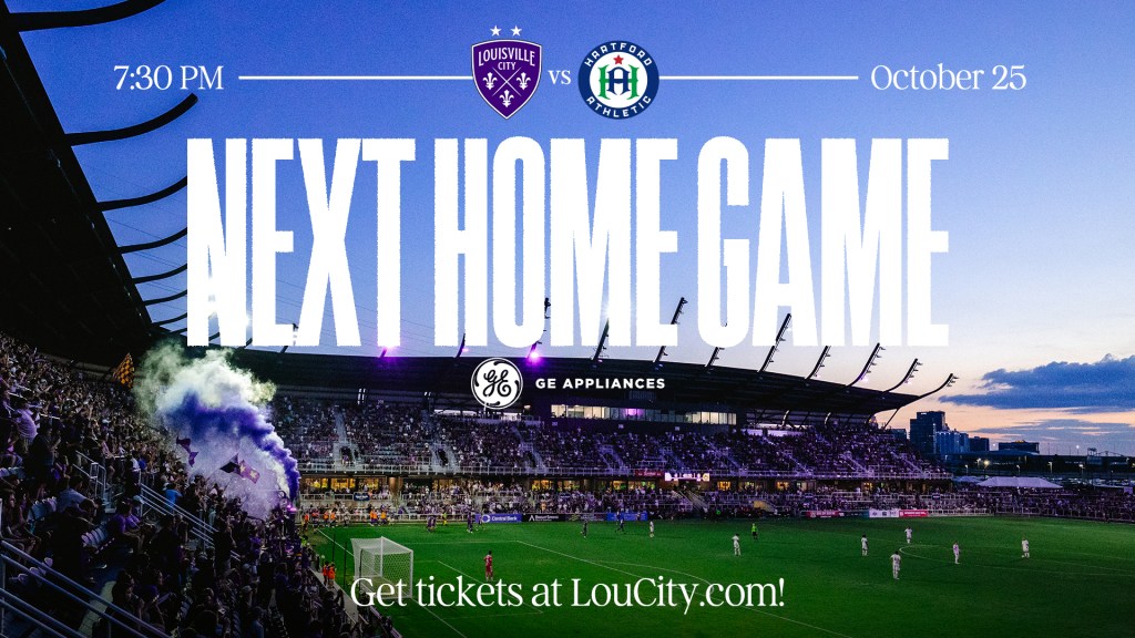Join us Saturday, October 25, for the final game of Louisville City FC’s regular season! Let’s pack Lynn Family Stadium and send the boys in purple into the playoffs on a winning note with kickoff set for 7:30 p.m. against Hartford Athletic.